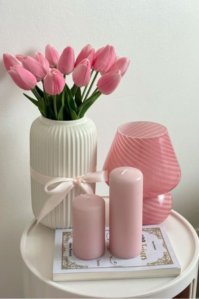 Softly scented candles in pastel hues add a cozy and inviting ambiance to the space. Look for candles with fragrances like lavender, rose, or vanilla.
