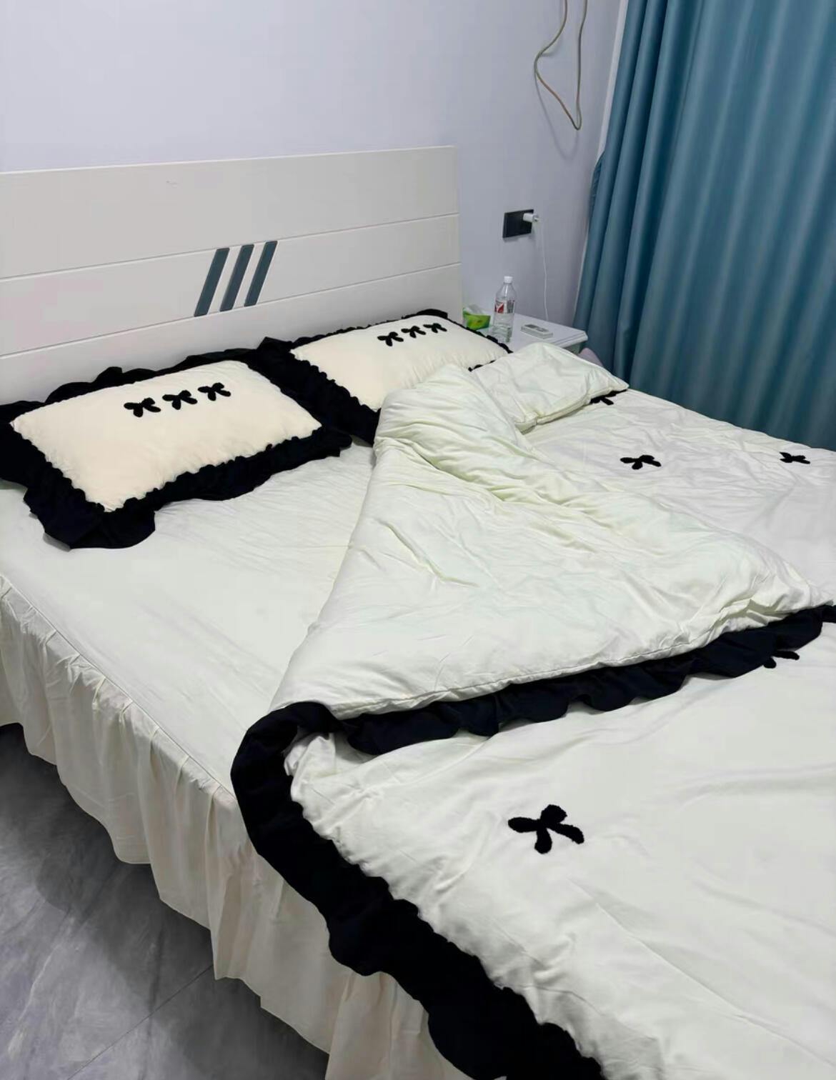 Transform your bedroom into a dreamy aesthetic haven with our Aesthetic Pink Bedding Set with Black Bow. This skin-friendly and soft duvet cover set is designed for those who love a mix of elegance and comfort. Featuring a light pink and white palette with a stylish black bow detail, this bedding set is perfect for creating a pink aesthetic room. Available in various sizes including queen, full, and California king, this bedding set is versatile and fits most bed sizes.