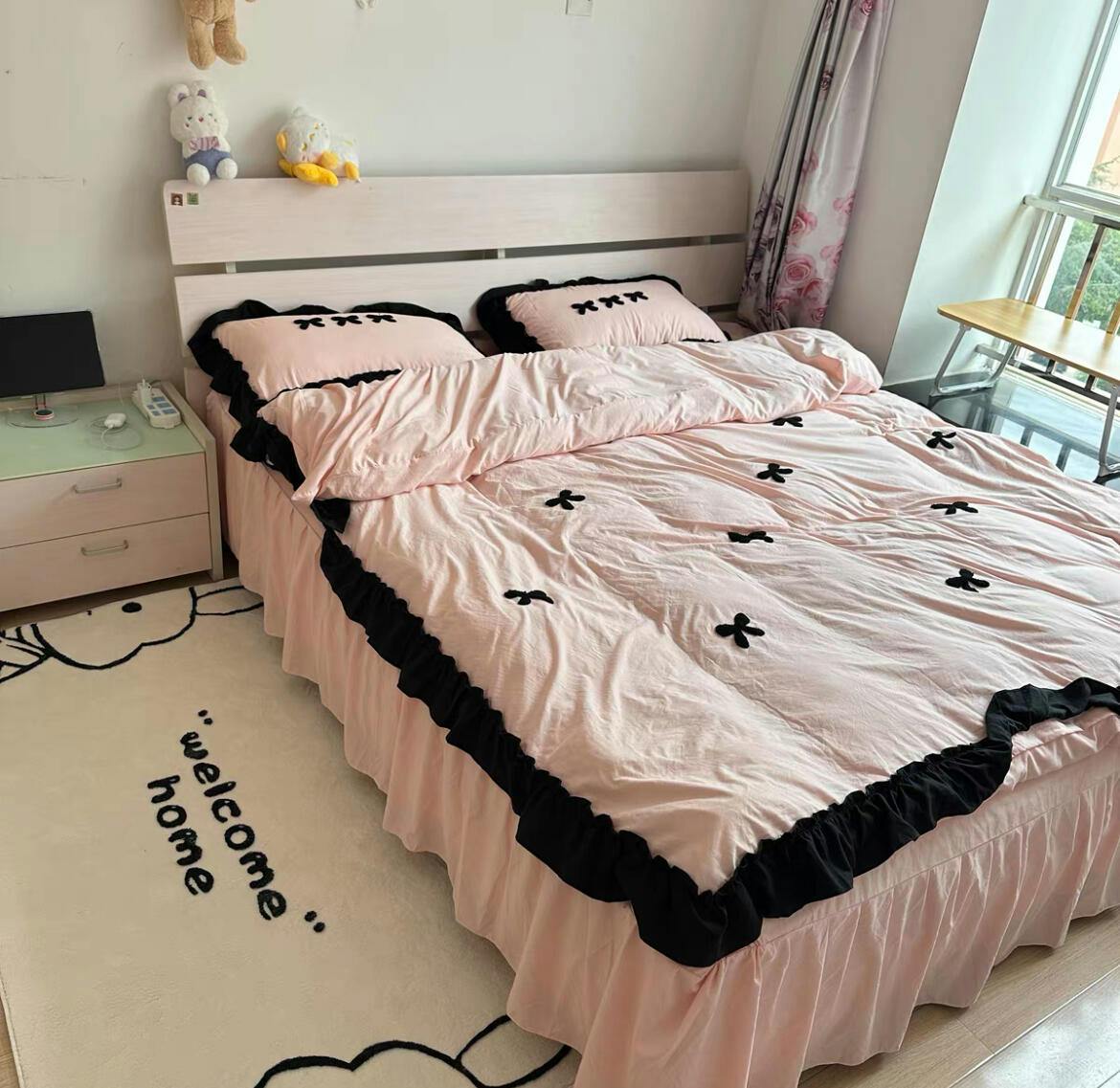 Aesthetic Pink Bedding Set with Bow