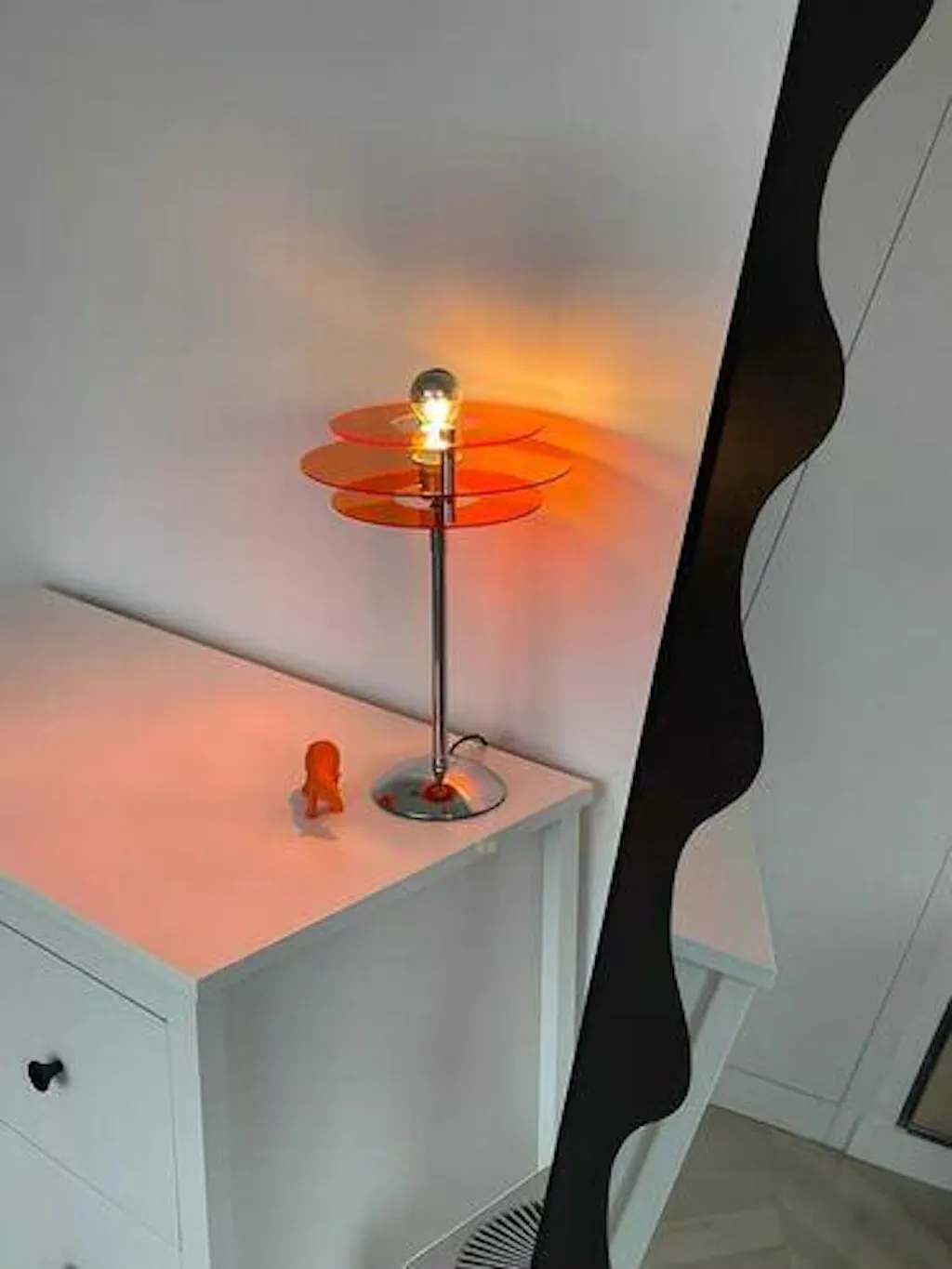 Place it on a console, bedside, or bookshelf and it instantly becomes the room’s statement piece. Clean, intentional, modern-retro. No clutter, no loud shapes, just designer lighting energy.