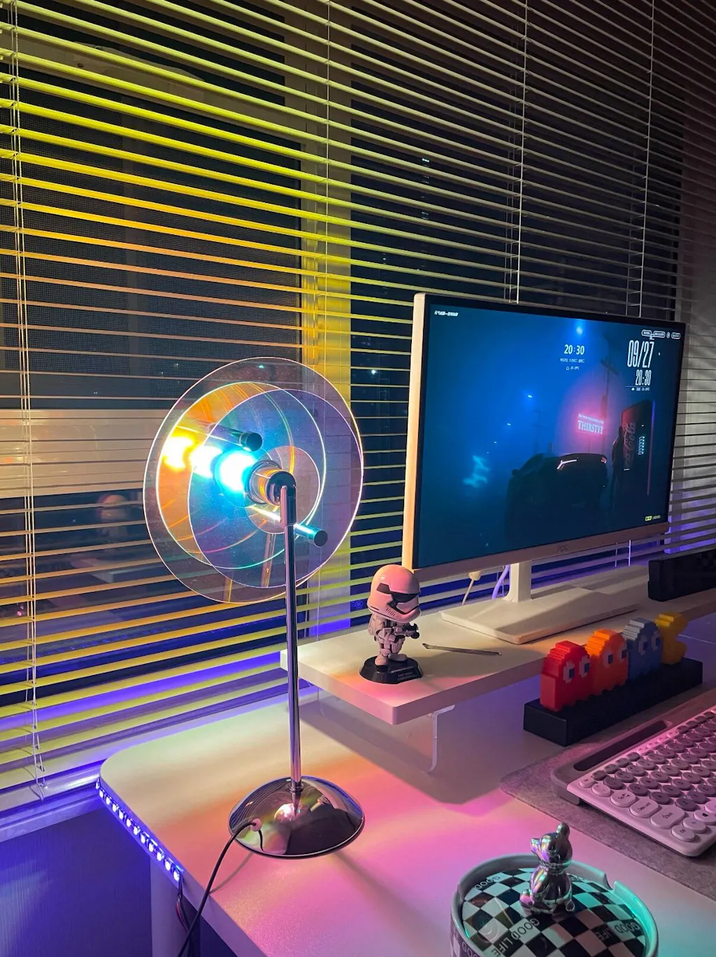 For city-night interiors, vintage posters, checkerboard accents, chrome details, and that “styled corner” look. This retro aura table lamp creates mood lighting that feels nostalgic yet fresh.