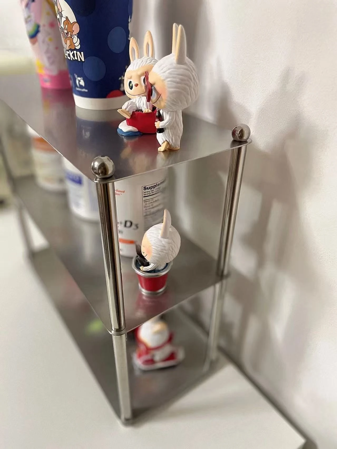 stainless steel storage rack, minimalist metal shelf, bauhaus kitchen organizer, industrial desktop organizer, coffee cup organizer stainless steel, modern bathroom metal shelf, countertop storage rack stainless steel, minimalist home organization, architectural home decor, metal cosmetic organizer