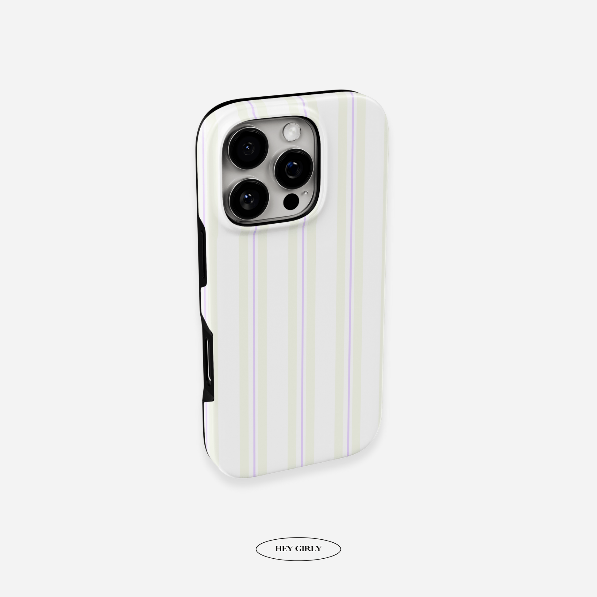 This dreamy striped phone case from Hey Girly x The Feelz brings effortless pastel charm to your everyday essentials. With a glossy finish and soft beige stripes paired with delicate lilac lines on a creamy white base, it's made for aesthetic girls who adore subtle elegance. Perfect for TikTok inspo, cozy dorm rooms, and soft girl photo dumps — it’s your new go-to accessory.