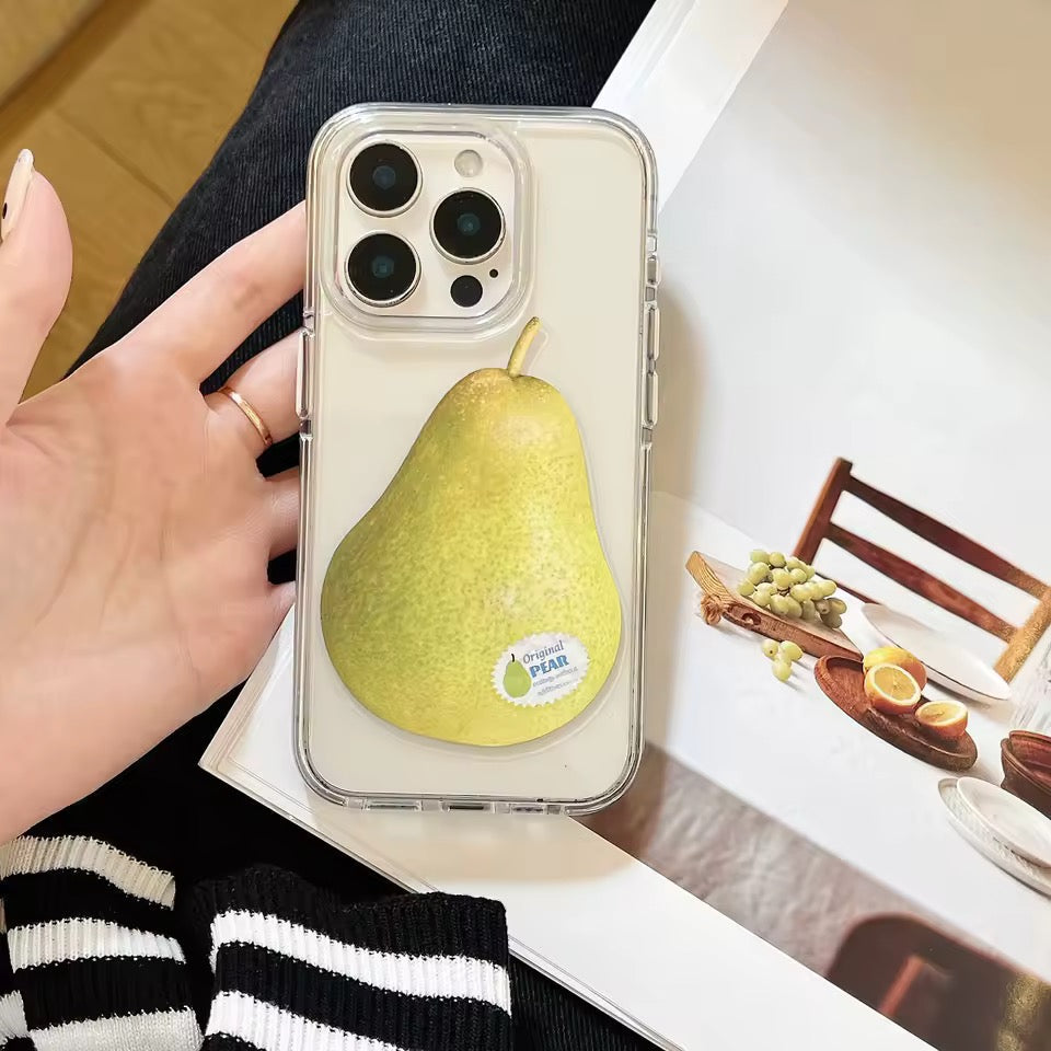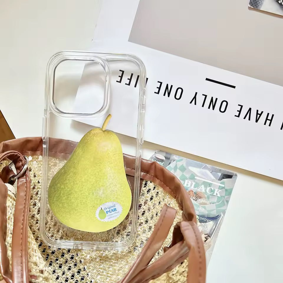 Fruitcore Pear iPhone Case — a fresh fruitcore moment. Transparent soft silicone with a realistic pear graphic that pops on mirror selfies, summer fits, and Pinterest flatlays.