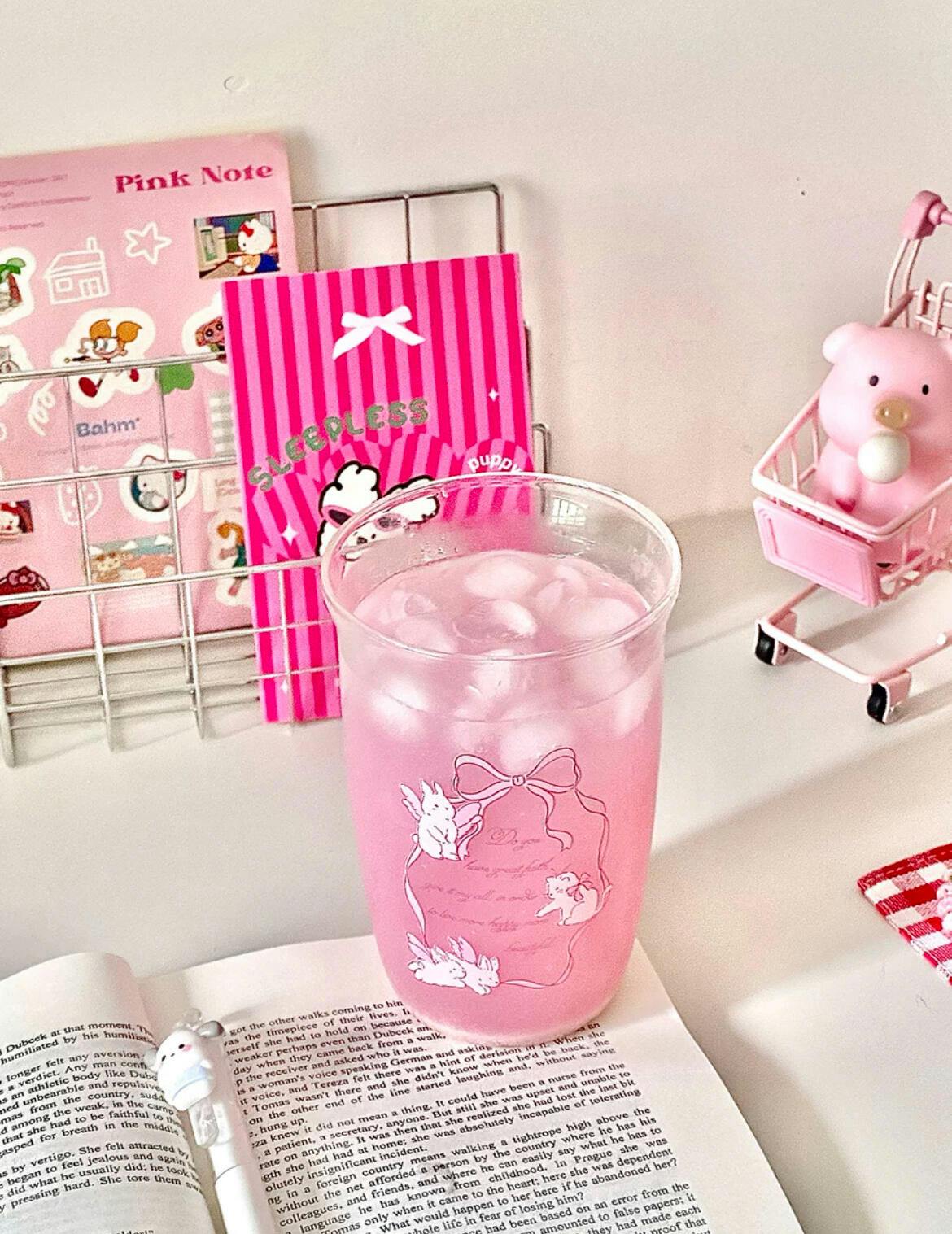 Korean Sweet Bow Glass - Pink Bowknot Design, Tumbler for Coffee & Cold Brew