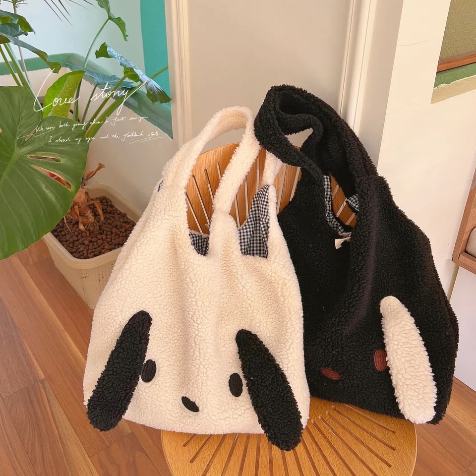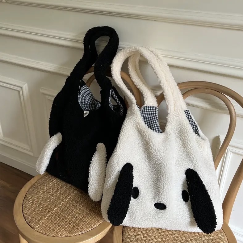Cute Plush Tote Bag – Cute Dog Pattern Design with Big Ears