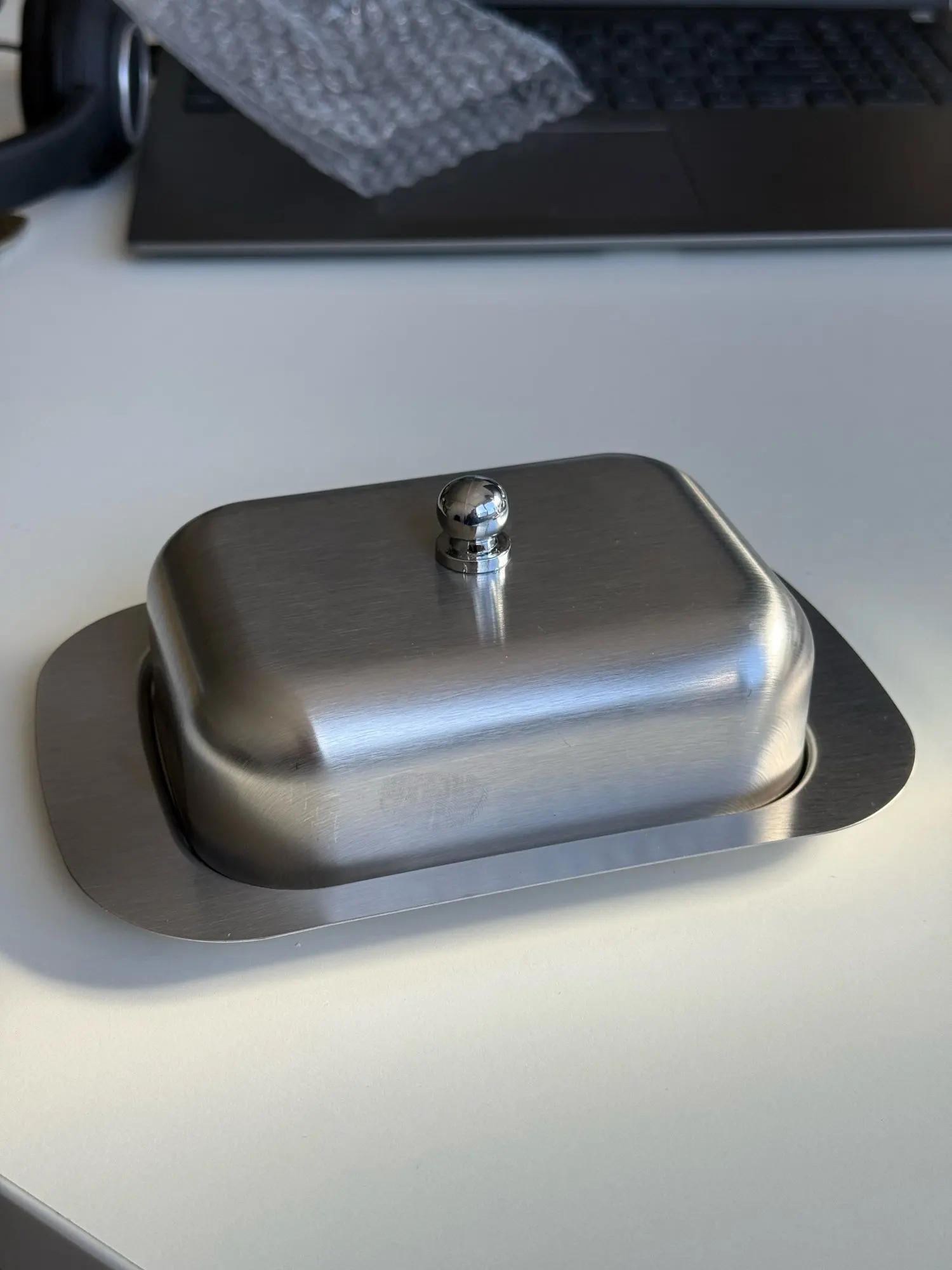 Add this stainless steel butter dish to your kitchen and turn everyday moments into effortless table elegance.